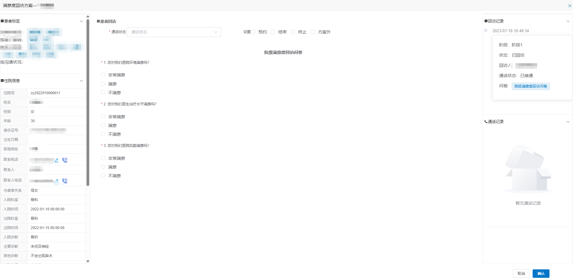 某醫院滿意度回訪及智慧隨訪系統