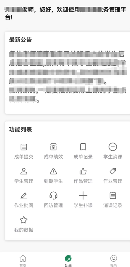• 學(xué)生消課與管理:課堂點名消課,記錄學(xué)生進度,查看學(xué)生檔案與到期提醒。
